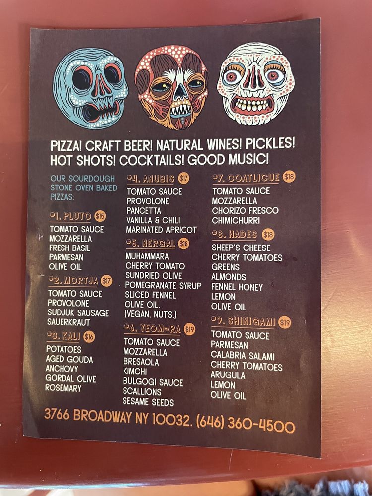 Introducing Doden, a unique pizza restaurant located at 3766 Broadway in New York. This delightful eatery offers a menu that transcends traditional pizza, with standout items like the ANUBSIS, featuring tomato sauce, provolone, and a burst of flavors from vanilla and chili marinated apricots. For those craving something hearty, the COATLICUE combines mozzarella with chorizo fresco and chimichurri.
